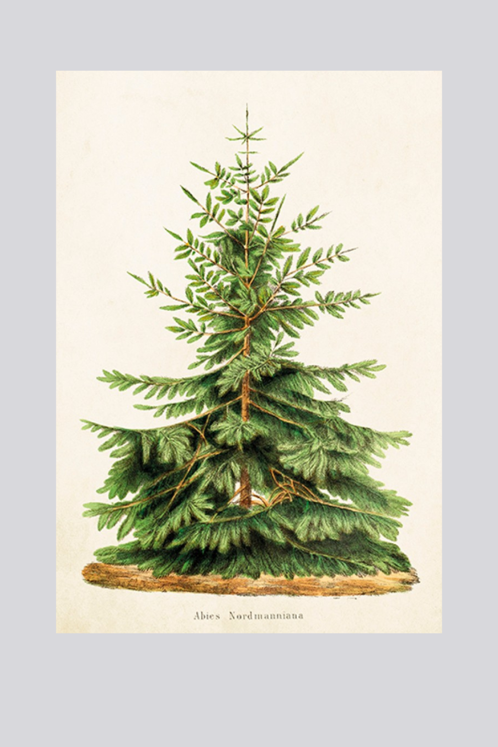 Ett vackert dubbelt vykort med botaniskt granmotiv som förmedlar en lugn och naturlig känsla. Den detaljrika illustrationen ger kortet ett tidlöst och rustikt uttryck som passar vid många tillfällen – från personliga hälsningar till tackkort eller en enkel omtänksam rad.