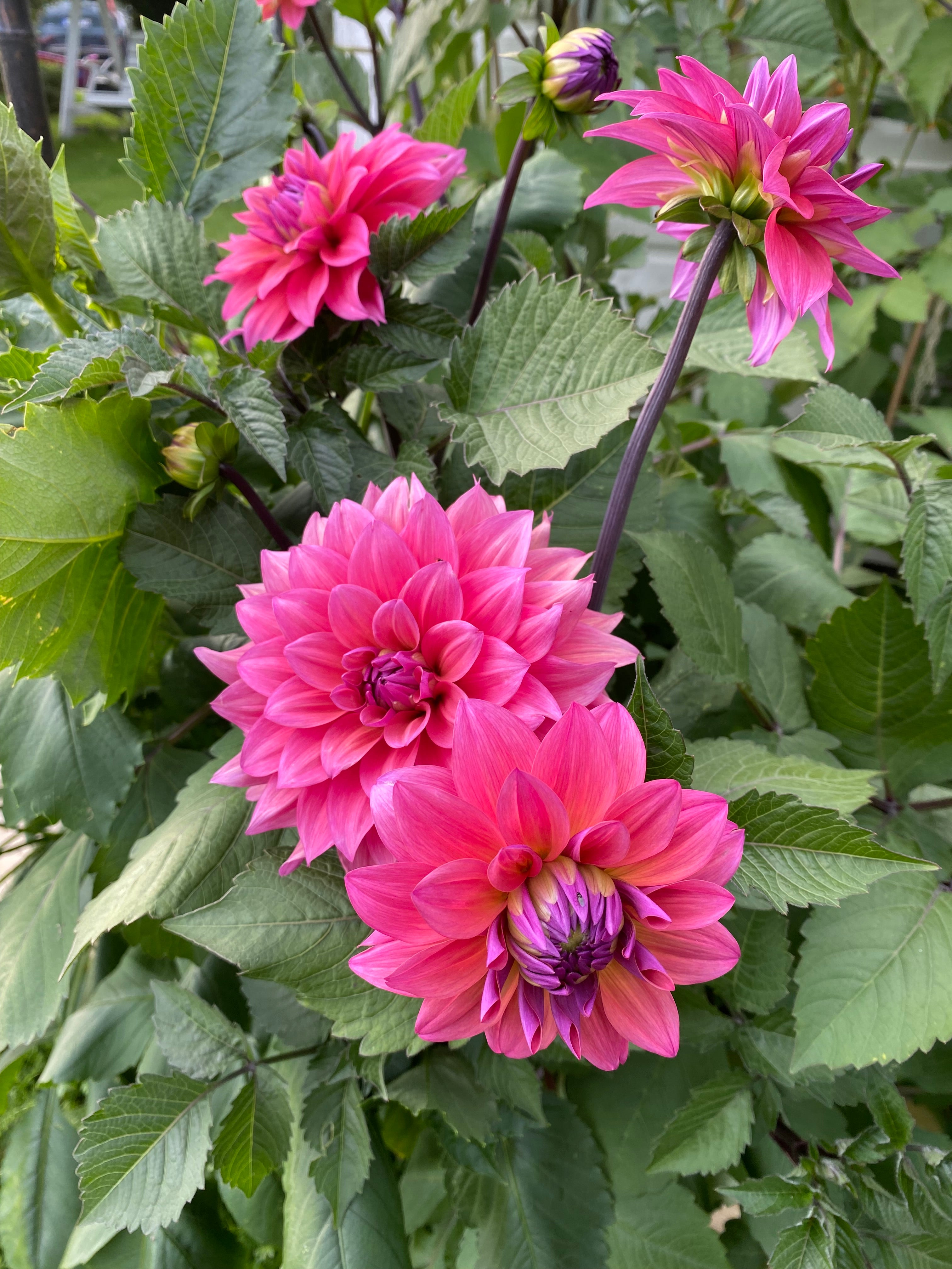 'Feline Yvonne' är en rikblommande dahlia i en livligt rosa färg som utvecklar en palett av nyanser på nära håll. Knoppen är purpurfärgad, medan de utslagna kronbladen är intensivt rosa med inslag av aprikos och lila. Stjälkarna är mörka och ger en fin kontrast till de blommiga färgerna. Denna skönhet förgyller rabatten under lång tid och blir en självklar blickfångare i trädgården.