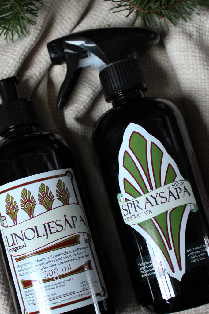 Grunne Linoljesåpa Spray – Effektiv och Miljövänlig Rengöring i Tre Härliga Dofter