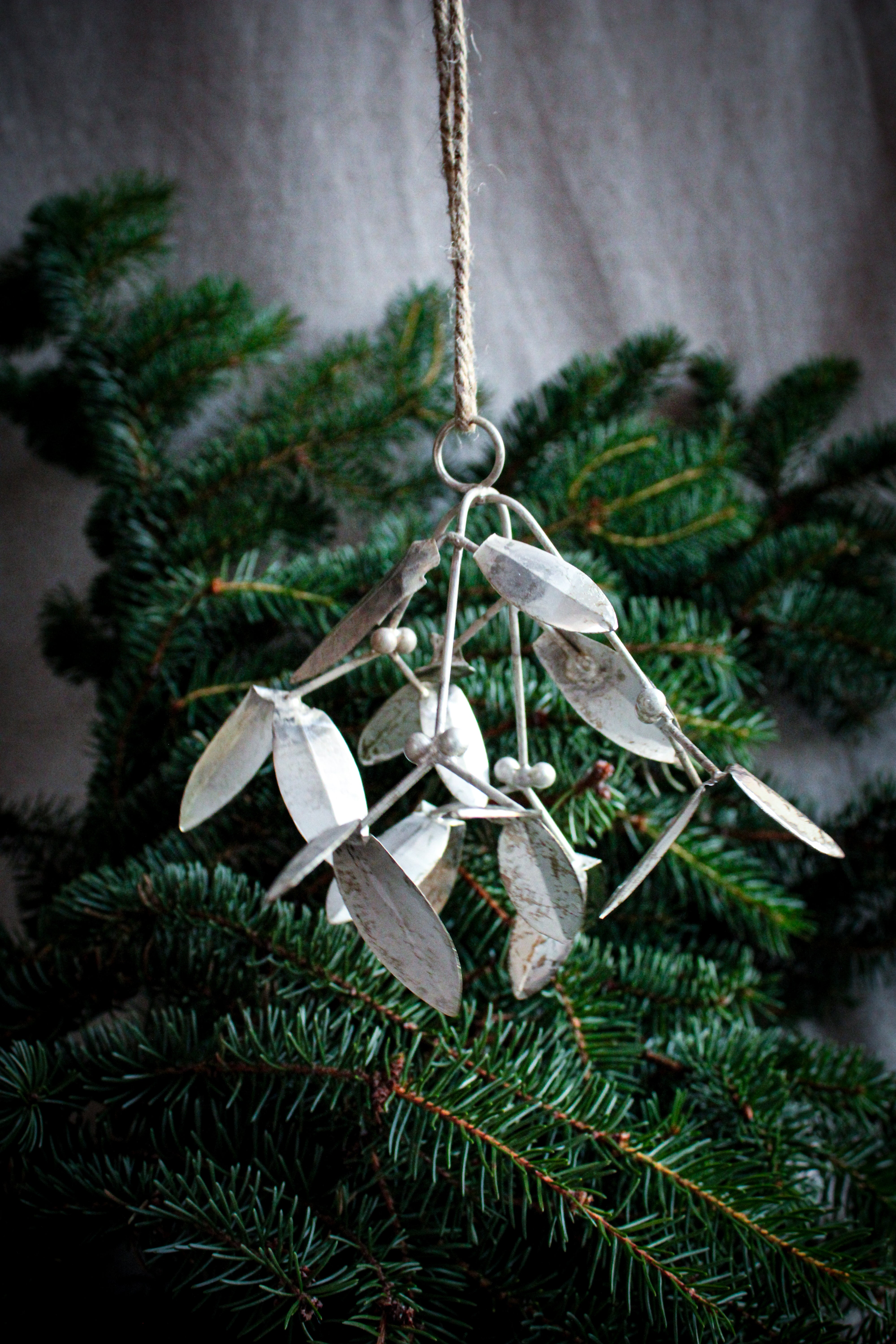 Denna vackra mistelkvist är en stilren juldekoration att hänga i fönstret, över bordet eller på väggen. Tillverkad i metall med champagnemelerad yta som ger ett rustikt och genuint uttryck. Storlek 16 x 12 cm.