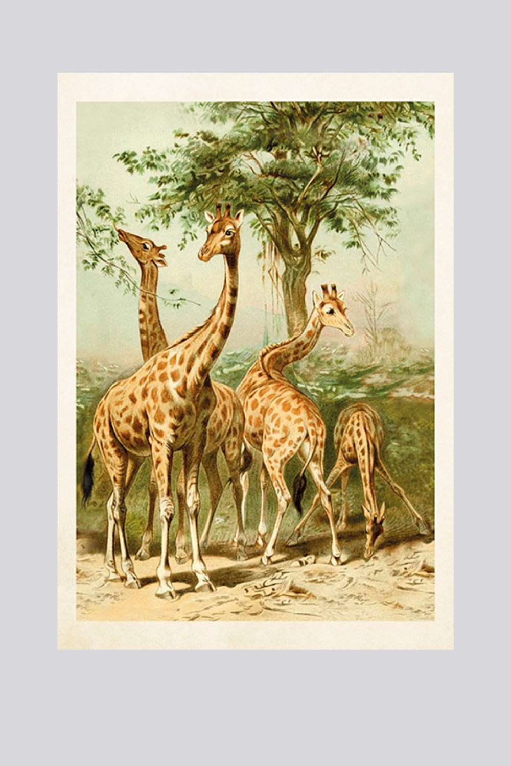 Ett vackert dubbelt vykort med ett stilrent giraffmotiv som ger ett lekfullt men tidlöst uttryck. Passar fint för personliga hälsningar, gratulationer eller som ett litet kort att ge bort tillsammans med en present.