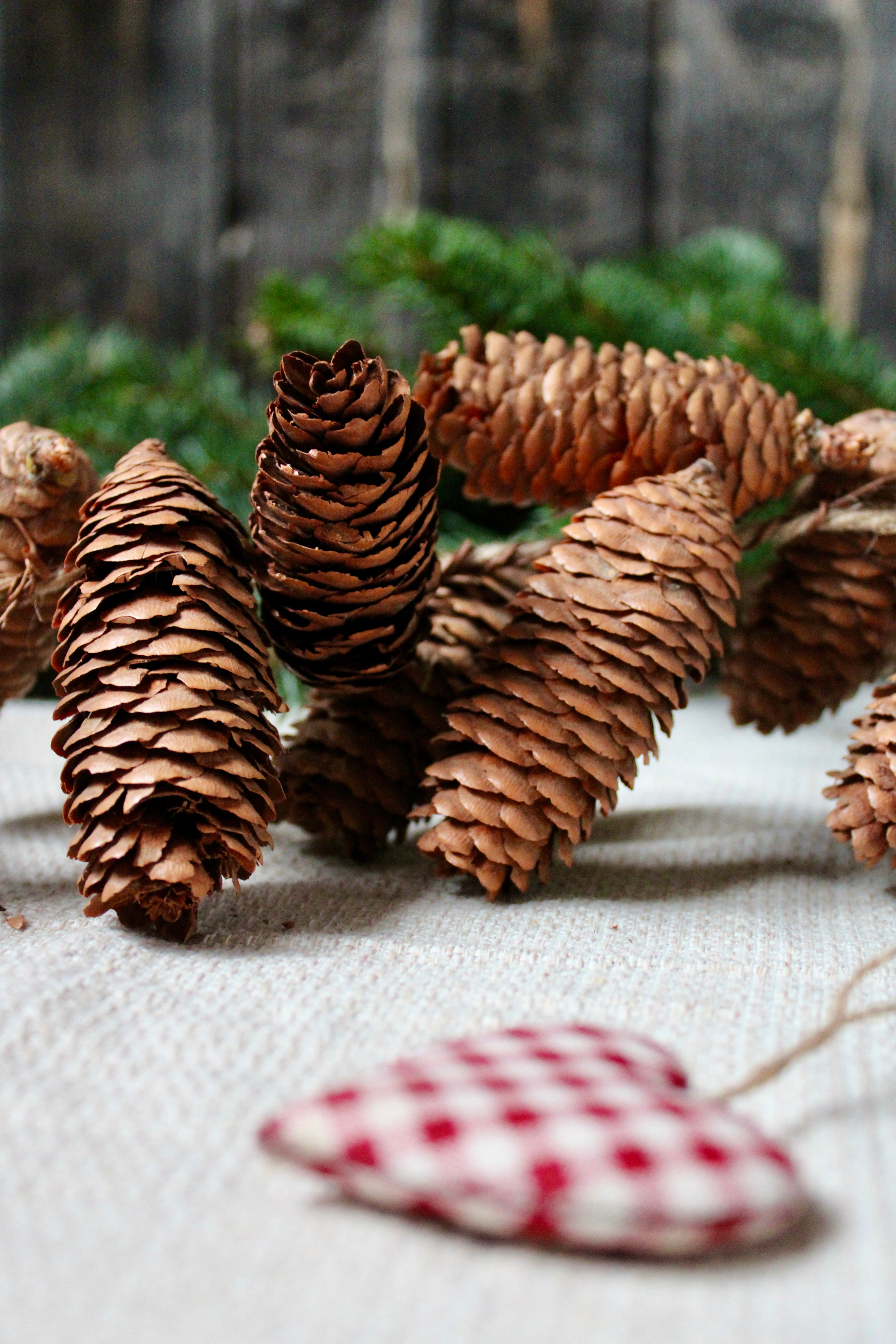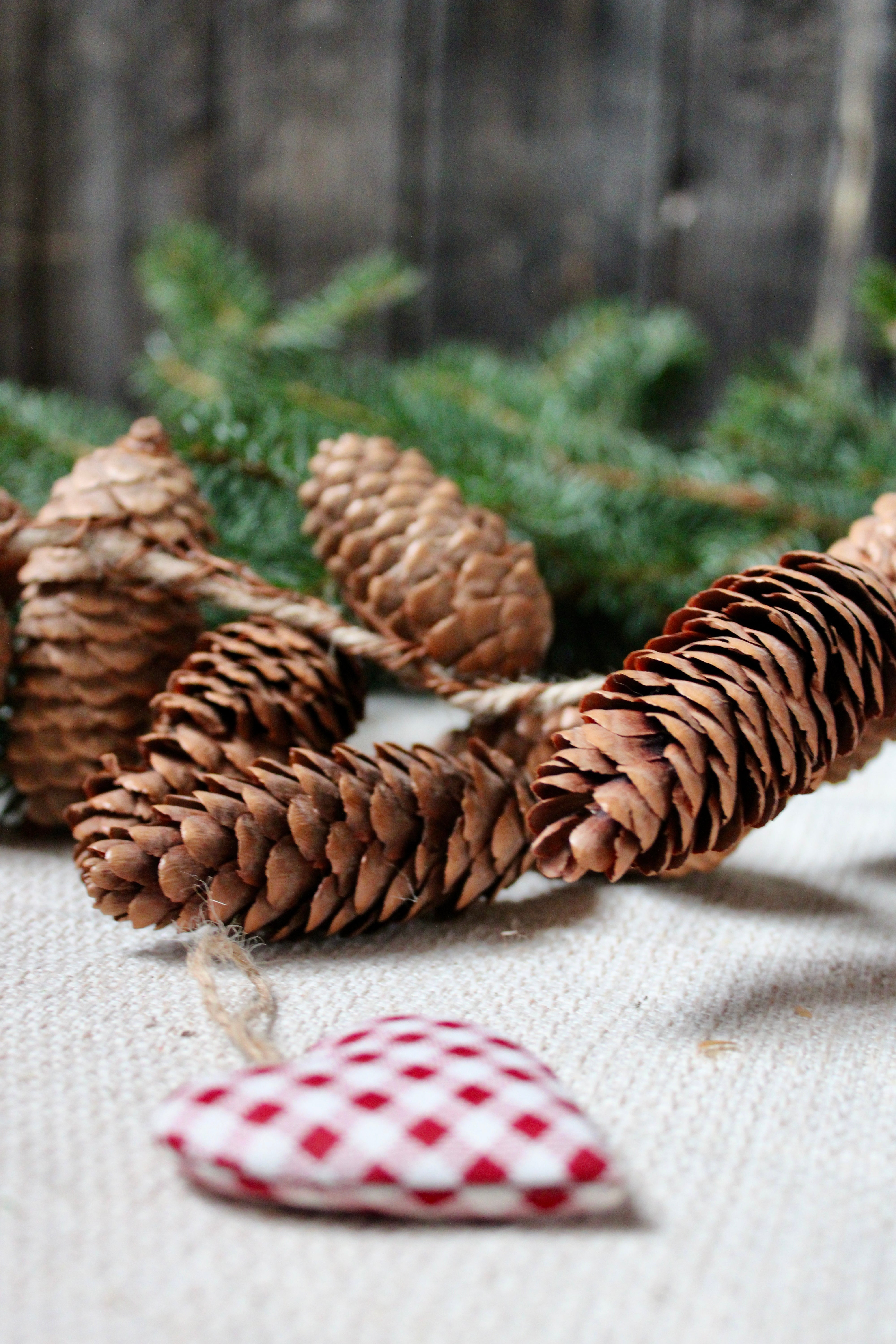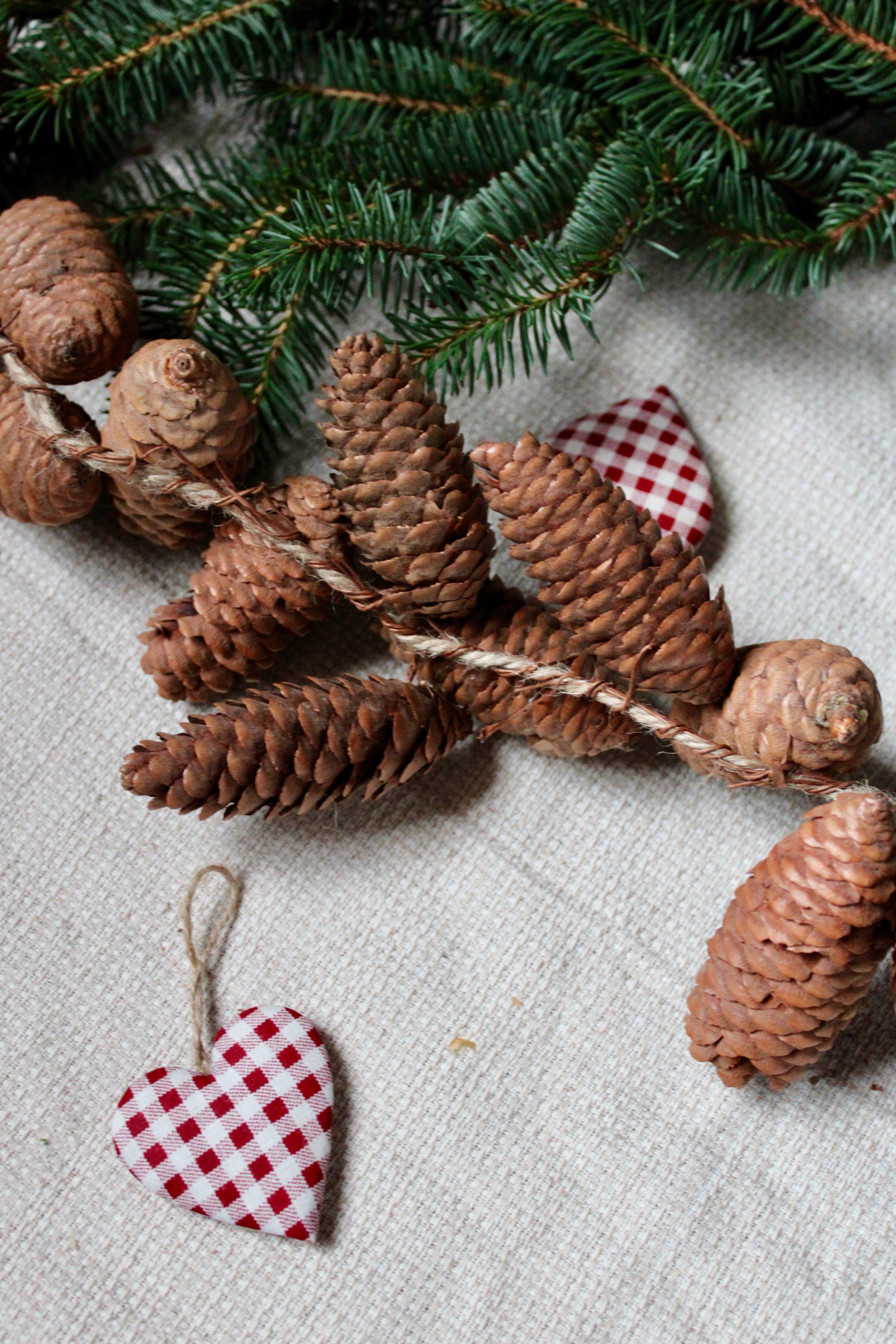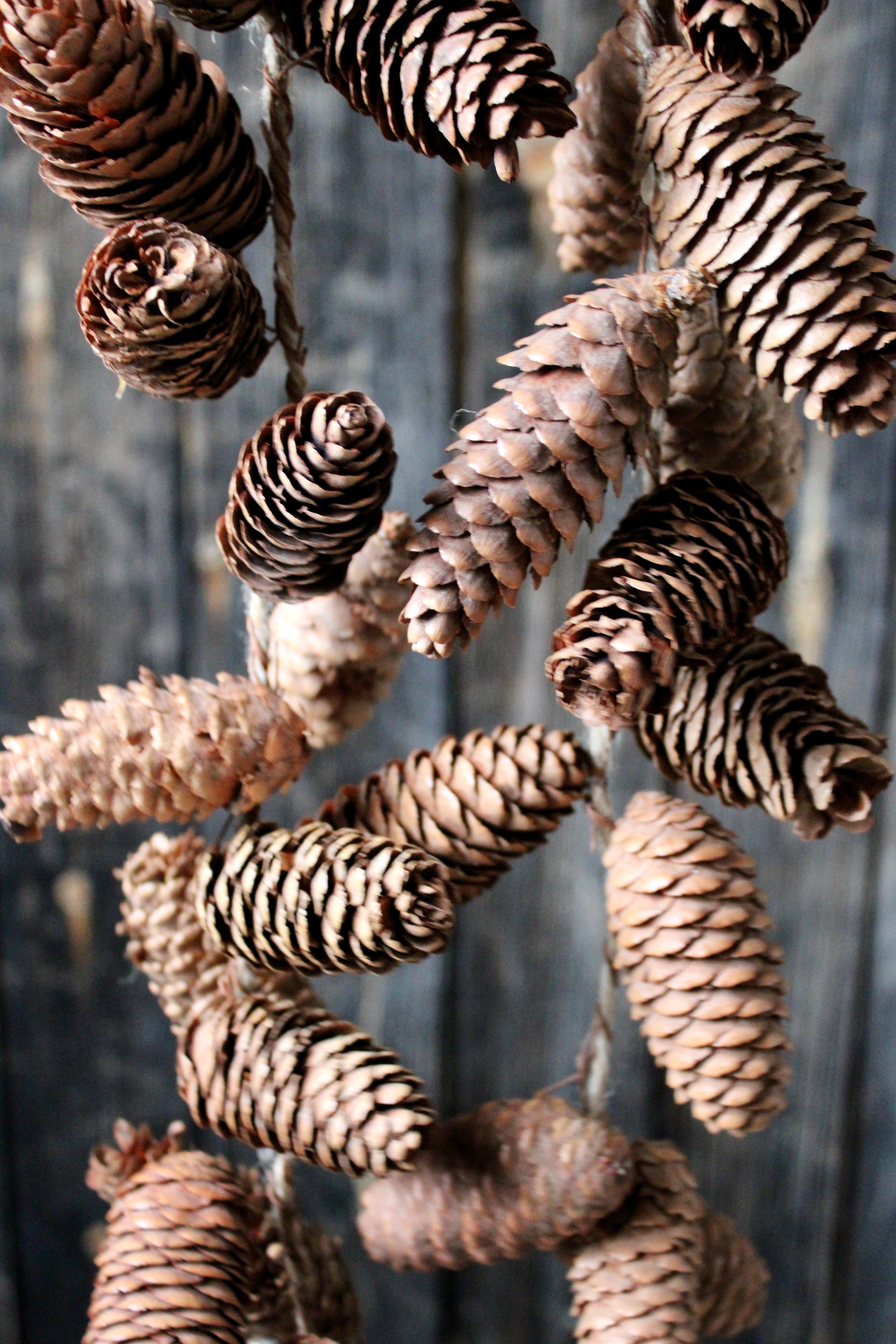 OBS! På bilden syns två girlanger, en med lärkkottar och en med grankottar.