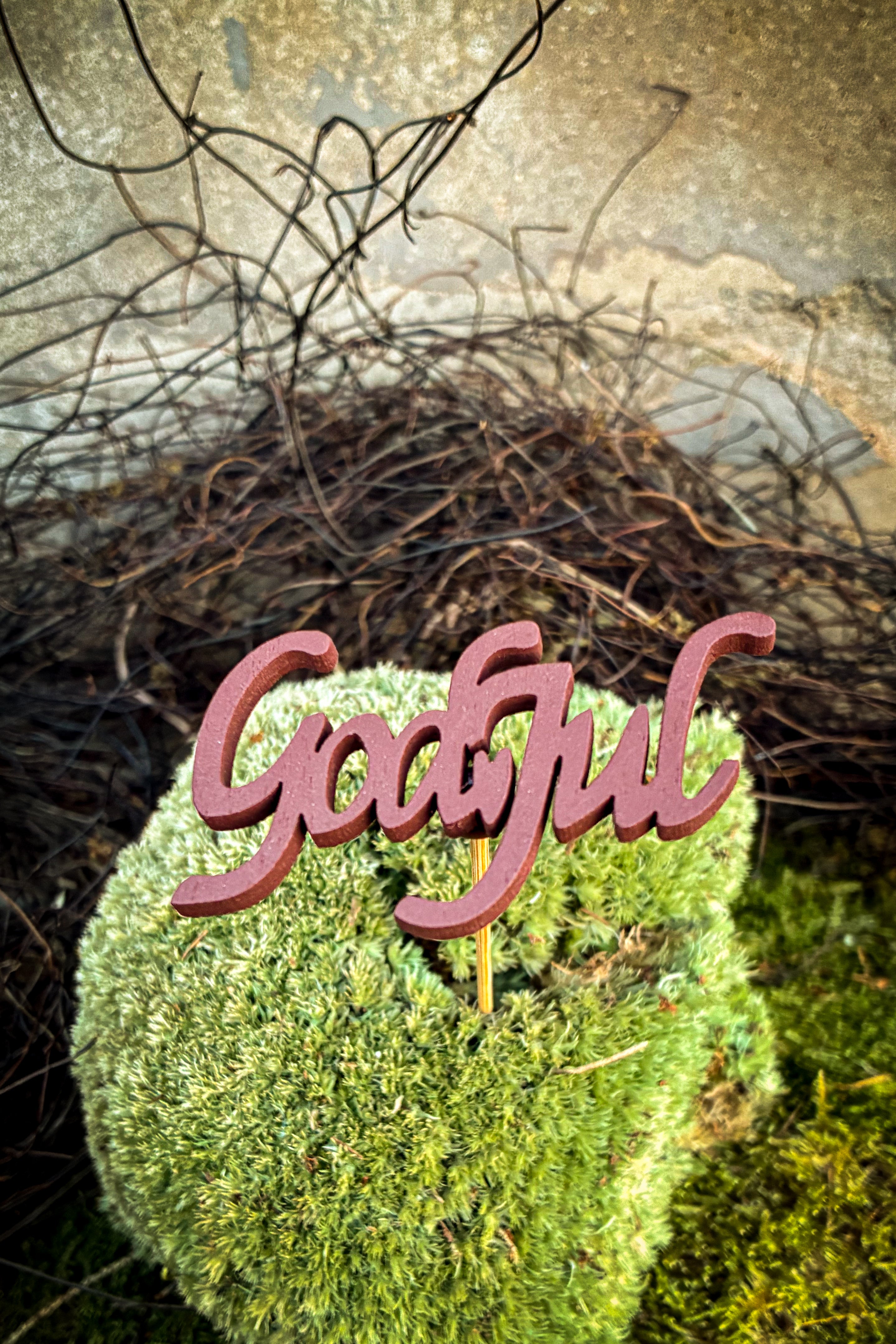 En rustik God Jul-skylt på pinne som skapar stämning i blomsterarrangemang, dörrkransar och juliga gåbortpresenter. En enkel och genuin detalj som lyfter både stora och små dekorationer.