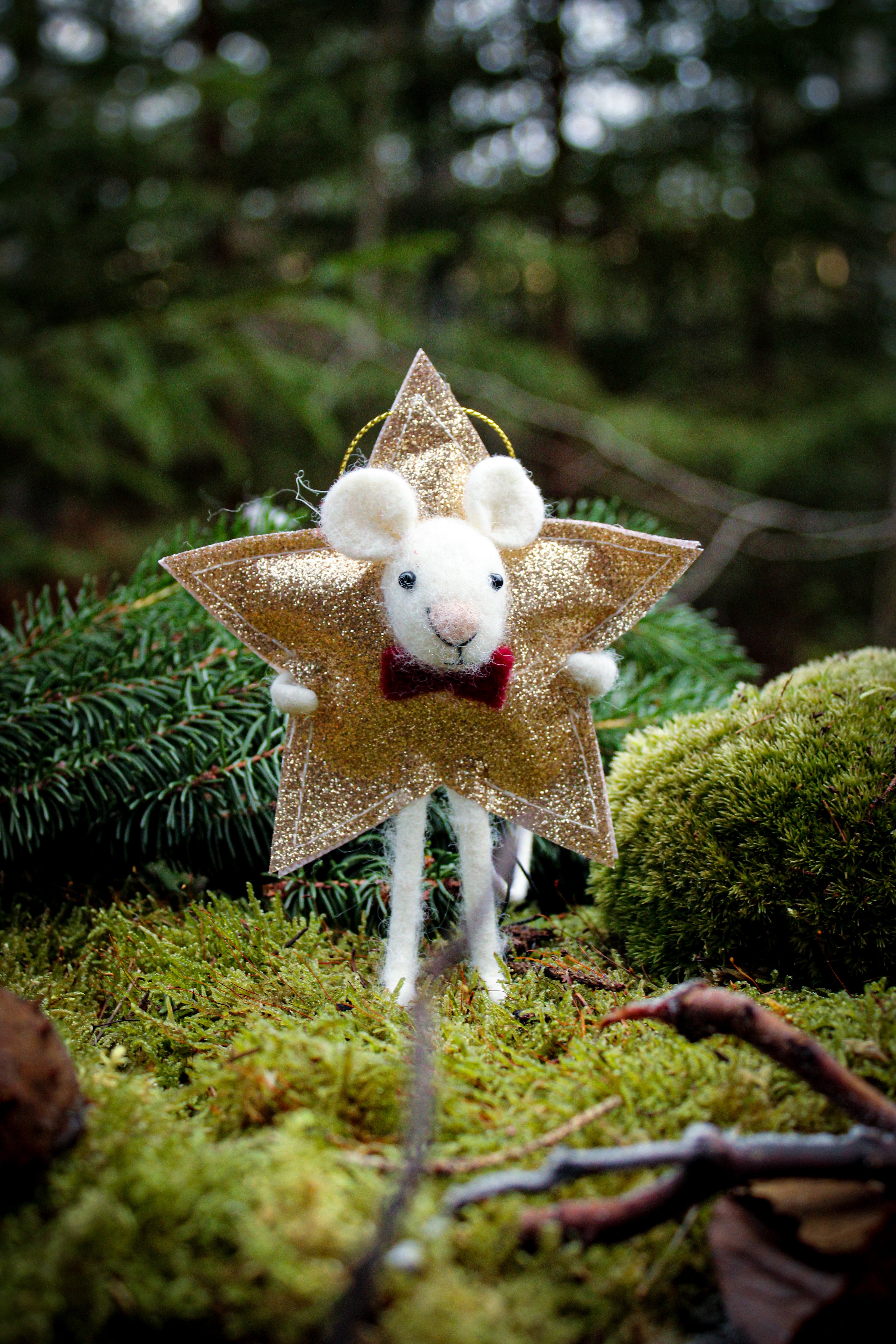 Söt ullmus med hänge, dekorerade som stjärna. De charmiga detaljerna gör den till fint inslag i julgranen eller som små dekorationer runt om i hemmet. Perfekta för dig som vill skapa en varm, lekfull och naturlig julkänsla.